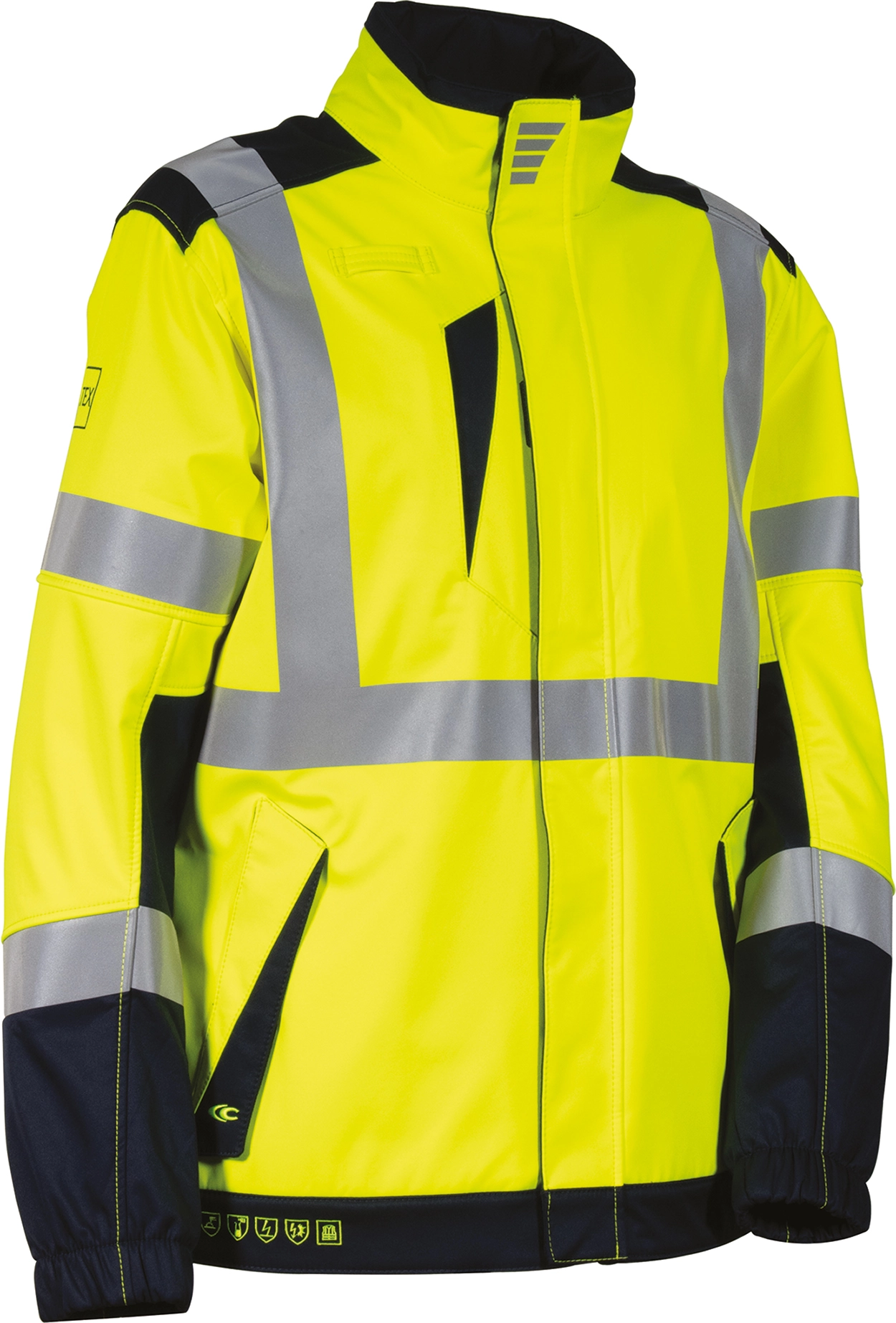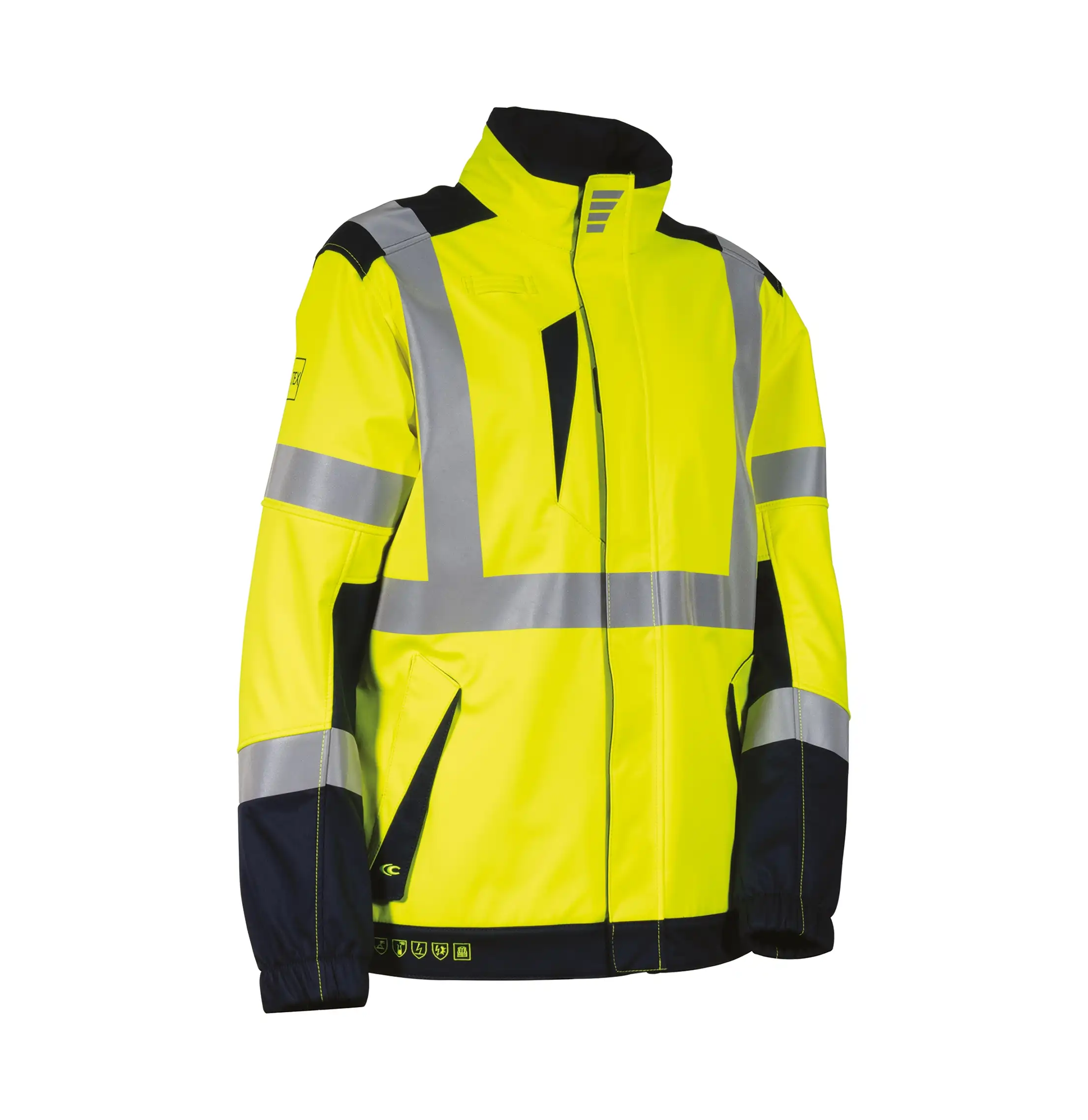 Karakteristikat : Xhaketa është e pajisur me zinxhirë YKK®, xhepa funksionalë (kraharor dhe ballorë me velcro) dhe shirit radie. Përfshin shirita reflektues antiflakë të ngjitur me nxehtësi dhe dizajnin e zgjatur në pjesën e pasme për mbrojtje gjatë përkuljeve. Pjesa e brendshme është prej fllisi të ngrohtë, ndërsa detajet përfshijnë piktograme sigurie të qëndisura, mansheta elastike dhe markimin “ATEX” në mëngë.